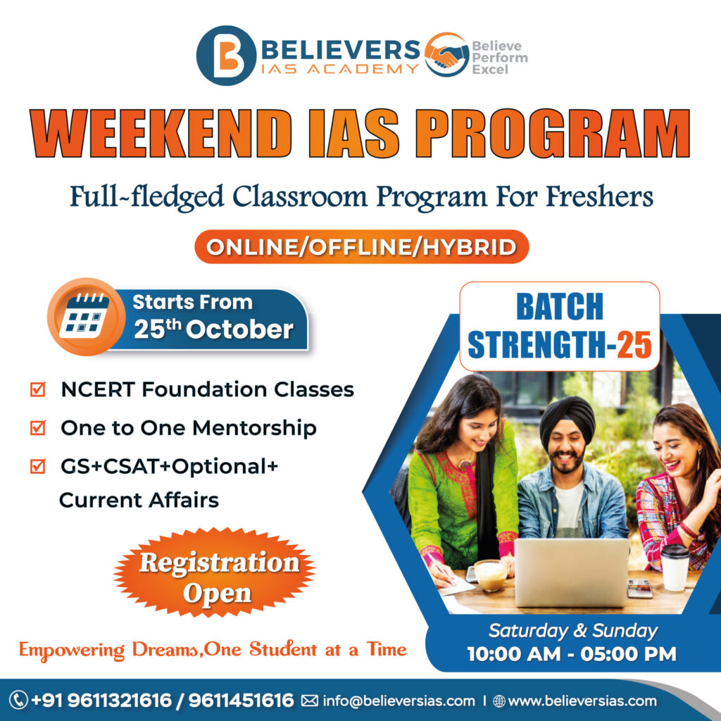 Believers IAS is one stop solution for Offline & Online IAS Coaching in Bengaluru. Good size of student batch, Best Guidance and high skilled teaching team. Highly Recommended to join.